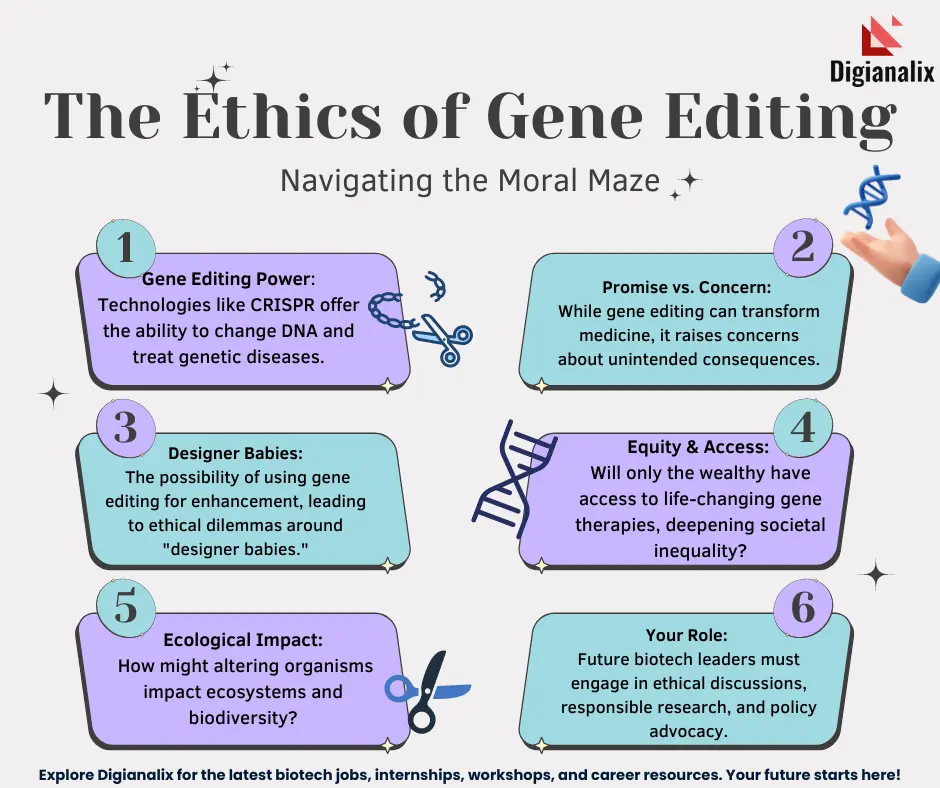 | Unintended Consequences | Gene editing may result in unforeseen genetic interactions and effects. |